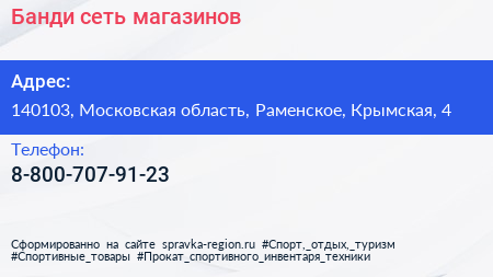 Банди, сеть магазинов по адресу 140103, Московская область, Раменское, Крымская, 4 в дальнейшем Организация, размещена в следующих категориях: