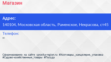 Магазин по адресу 140104, Московская область, Раменское, Некрасова, ст45 в дальнейшем Организация, размещена в следующих категориях: