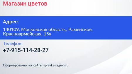 Магазин цветов по адресу 140109, Московская область, Раменское, Красноармейская, 15а в дальнейшем Организация, размещена в следующих категориях: