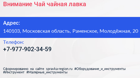 Внимание.Чай, чайная лавка по адресу 140103, Московская область, Раменское, Молодёжная, 20 в дальнейшем Организация, размещена в следующих категориях: