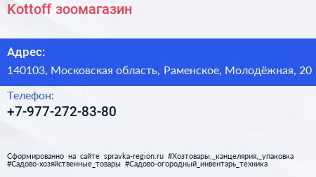 Kottoff, зоомагазин по адресу 140103, Московская область, Раменское, Молодёжная, 20 в дальнейшем Организация, размещена в следующих категориях: