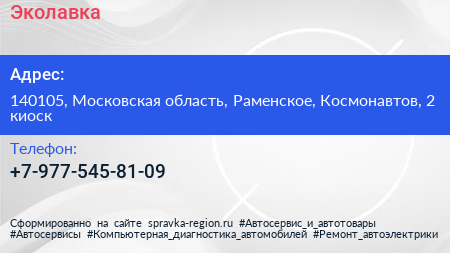 Эколавка по адресу 140105, Московская область, Раменское, Космонавтов, 2 киоск в дальнейшем Организация, размещена в следующих категориях: