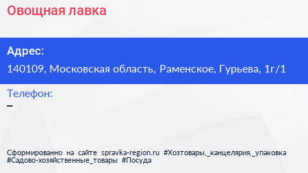 Овощная лавка по адресу 140109, Московская область, Раменское, Гурьева, 1г/1 в дальнейшем Организация, размещена в следующих категориях: