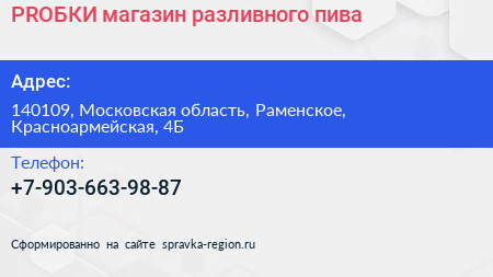 #PRОБКИ, магазин разливного пива по адресу 140109, Московская область, Раменское, Красноармейская, 4Б в дальнейшем Организация, размещена в следующих категориях: