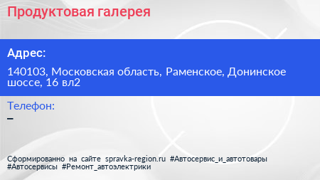 Продуктовая галерея по адресу 140103, Московская область, Раменское, Донинское шоссе, 16 вл2 в дальнейшем Организация, размещена в следующих категориях: