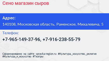 Сено, магазин сыров по адресу 140108, Московская область, Раменское, Михалевича, 5 в дальнейшем Организация, размещена в следующих категориях: