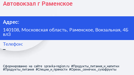 Автовокзал, г. Раменское по адресу 140108, Московская область, Раменское, Вокзальная, 4Б вл3 в дальнейшем Организация, размещена в следующих категориях: