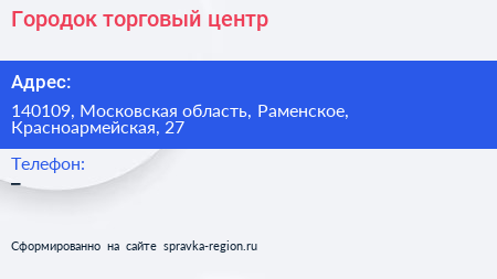 Городок, торговый центр по адресу 140109, Московская область, Раменское, Красноармейская, 27 в дальнейшем Организация, размещена в следующих категориях: