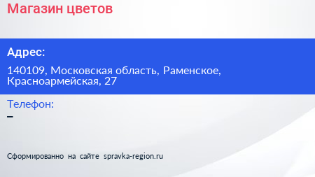 Магазин цветов по адресу 140109, Московская область, Раменское, Красноармейская, 27 в дальнейшем Организация, размещена в следующих категориях: