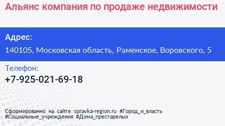 Альянс, компания по продаже недвижимости по адресу 140105, Московская область, Раменское, Воровского, 5 в дальнейшем Организация, размещена в следующих категориях: