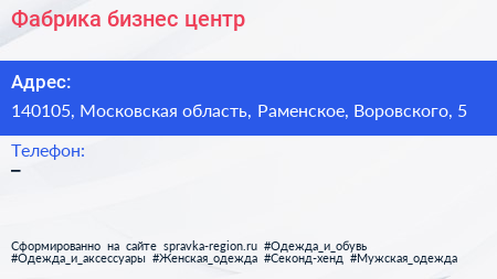 Фабрика, бизнес-центр по адресу 140105, Московская область, Раменское, Воровского, 5 в дальнейшем Организация, размещена в следующих категориях:
