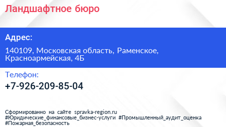 Ландшафтное бюро по адресу 140109, Московская область, Раменское, Красноармейская, 4Б в дальнейшем Организация, размещена в следующих категориях: