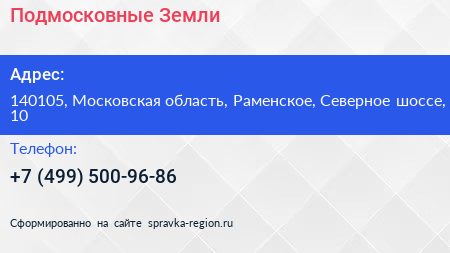Подмосковные Земли по адресу 140105, Московская область, Раменское, Северное шоссе, 10 в дальнейшем Организация, размещена в следующих категориях: