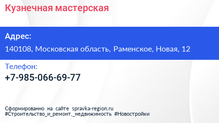 Кузнечная мастерская по адресу 140108, Московская область, Раменское, Новая, 12 в дальнейшем Организация, размещена в следующих категориях: