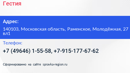 Гестия по адресу 140103, Московская область, Раменское, Молодёжная, 27 вл1 в дальнейшем Организация, размещена в следующих категориях: