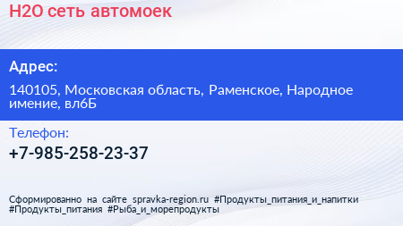 H2O, сеть автомоек по адресу 140105, Московская область, Раменское, Народное имение, вл6Б в дальнейшем Организация, размещена в следующих категориях:
