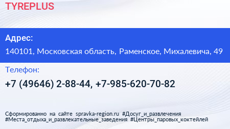 TYREPLUS по адресу 140101, Московская область, Раменское, Михалевича, 49 в дальнейшем Организация, размещена в следующих категориях: