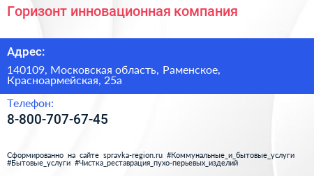 Горизонт, инновационная компания по адресу 140109, Московская область, Раменское, Красноармейская, 25а в дальнейшем Организация, размещена в следующих категориях: