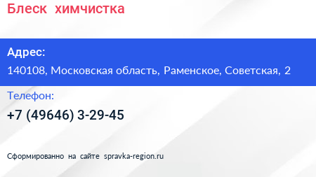 Блеск+, химчистка по адресу 140108, Московская область, Раменское, Советская, 2 в дальнейшем Организация, размещена в следующих категориях: