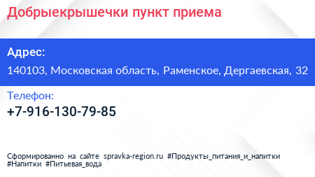 #Добрыекрышечки, пункт приема по адресу 140103, Московская область, Раменское, Дергаевская, 32 в дальнейшем Организация, размещена в следующих категориях: