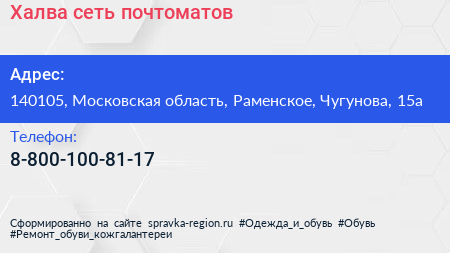 Халва, сеть почтоматов по адресу 140105, Московская область, Раменское, Чугунова, 15а в дальнейшем Организация, размещена в следующих категориях: