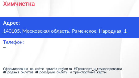 Химчистка по адресу 140105, Московская область, Раменское, Народная, 1 в дальнейшем Организация, размещена в следующих категориях: