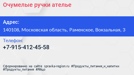 Очумелые ручки, ателье по адресу 140108, Московская область, Раменское, Вокзальная, 3 в дальнейшем Организация, размещена в следующих категориях: