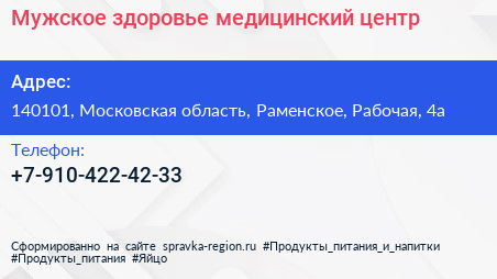 Мужское здоровье, медицинский центр по адресу 140101, Московская область, Раменское, Рабочая, 4а в дальнейшем Организация, размещена в следующих категориях: