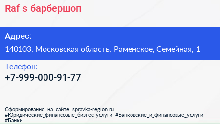 Raf`s, барбершоп по адресу 140103, Московская область, Раменское, Семейная, 1 в дальнейшем Организация, размещена в следующих категориях: