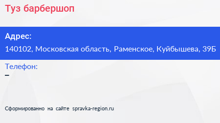 Туз, барбершоп по адресу 140102, Московская область, Раменское, Куйбышева, 39Б в дальнейшем Организация, размещена в следующих категориях: