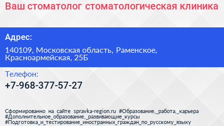 Ваш стоматолог, стоматологическая клиника по адресу 140109, Московская область, Раменское, Красноармейская, 25Б в дальнейшем Организация, размещена в следующих категориях: