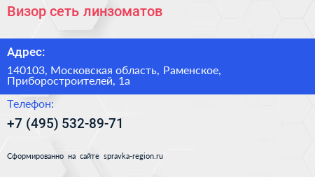 Визор, сеть линзоматов по адресу 140103, Московская область, Раменское, Приборостроителей, 1а в дальнейшем Организация, размещена в следующих категориях: