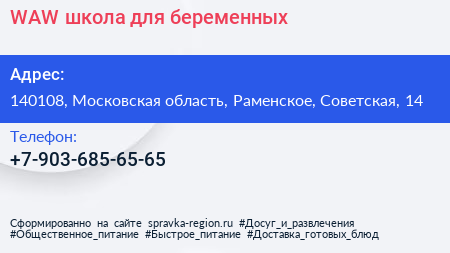 WAW, школа для беременных по адресу 140108, Московская область, Раменское, Советская, 14 в дальнейшем Организация, размещена в следующих категориях: