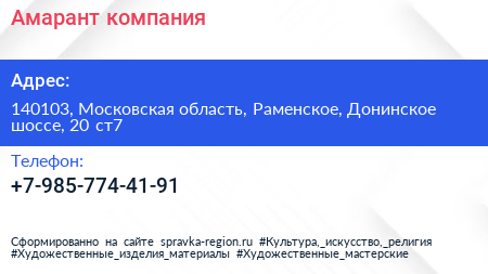 Амарант, компания по адресу 140103, Московская область, Раменское, Донинское шоссе, 20 ст7 в дальнейшем Организация, размещена в следующих категориях: