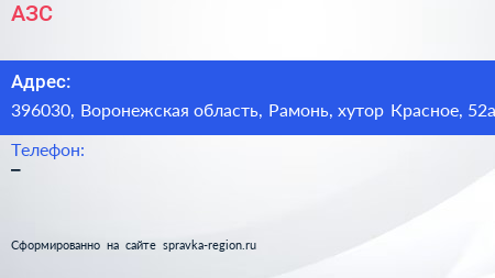 АЗС по адресу 396030, Воронежская область, Рамонь, хутор Красное, 52а в дальнейшем Организация, размещена в следующих категориях: