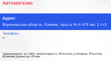 Автомагазин по адресу Воронежская область, Рамонь, трасса М-4 479 км, 2 ст2 в дальнейшем Организация, размещена в следующих категориях: