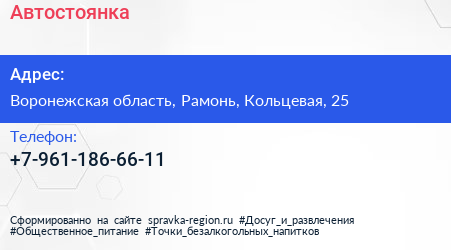 Автостоянка по адресу Воронежская область, Рамонь, Кольцевая, 25 в дальнейшем Организация, размещена в следующих категориях: