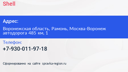 Shell по адресу Воронежская область, Рамонь, Москва-Воронеж автодорога 485 км, 1 в дальнейшем Организация, размещена в следующих категориях: