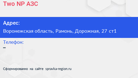 Two NP, АЗС по адресу Воронежская область, Рамонь, Дорожная, 27 ст1 в дальнейшем Организация, размещена в следующих категориях: