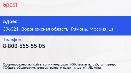5post по адресу 396021, Воронежская область, Рамонь, Мосина, 1а в дальнейшем Организация, размещена в следующих категориях: