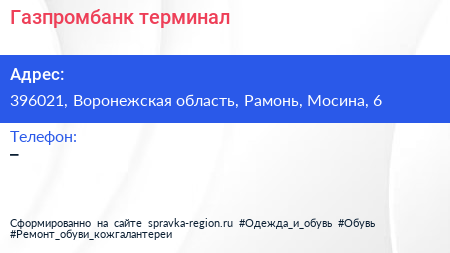 Газпромбанк, терминал по адресу 396021, Воронежская область, Рамонь, Мосина, 6 в дальнейшем Организация, размещена в следующих категориях: