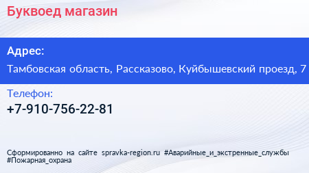 Буквоед, магазин по адресу Тамбовская область, Рассказово, Куйбышевский проезд, 7 в дальнейшем Организация, размещена в следующих категориях: