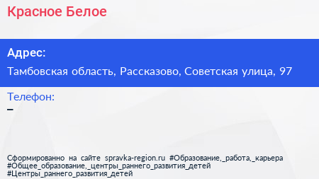 Красное & Белое по адресу Тамбовская область, Рассказово, Советская улица, 97 в дальнейшем Организация, размещена в следующих категориях: