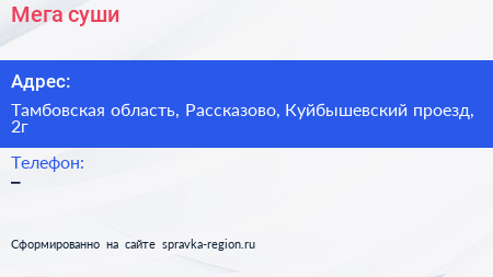 Мега суши по адресу Тамбовская область, Рассказово, Куйбышевский проезд, 2г в дальнейшем Организация, размещена в следующих категориях: