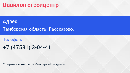 Вавилон, стройцентр по адресу Тамбовская область, Рассказово, в дальнейшем Организация, размещена в следующих категориях: