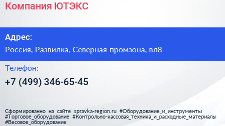 Компания ЮТЭКС по адресу Rusbaby, к471, улица Северная промзона, Промзона «Видное-Восточное», Видное, Ленинский городской округ, Московская область, Центральный федеральный округ, 142700, Россия в дальнейшем Организация, размещена в следующих категориях: