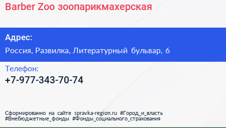 Barber Zoo, зоопарикмахерская по адресу Zoo салон, 6, Литературный бульвар, микрорайон Пригород Лесное, Мисайлово, Ленинский городской округ, Московская область, Центральный федеральный округ, 142721, Россия в дальнейшем Организация, размещена в следующих категориях: