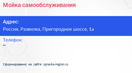Мойка самообслуживания по адресу Каширское шоссе - Молоково - Андреевское, микрорайон Пригород Лесное, Мисайлово, Ленинский городской округ, Московская область, Центральный федеральный округ, 142721, Россия в дальнейшем Организация, размещена в следующих категориях: