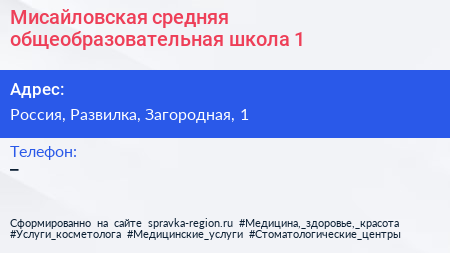 Мисайловская средняя общеобразовательная школа №1 по адресу Мисайловская средняя общеобразовательная школа №1, Литературный бульвар, микрорайон Пригород Лесное, Мисайлово, Ленинский городской округ, Московская область, Центральный федеральный округ, 142721, Россия в дальнейшем Организация, размещена в следующих категориях: