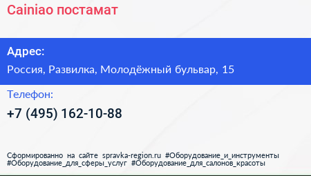 Cainiao, постамат по адресу Beauty Style, 15, Молодёжный бульвар, микрорайон Пригород Лесное, Мисайлово, Ленинский городской округ, Московская область, Центральный федеральный округ, 142721, Россия в дальнейшем Организация, размещена в следующих категориях: